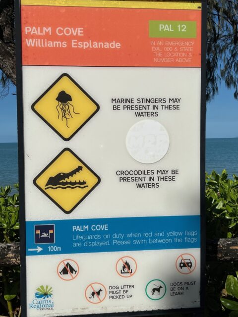 From Palm Cove, we travelled even further North in Queensland, to Port Douglas. (Just a note for anyone interested, we were able to do all of our travel within Queensland via Uber. It worked out great). Port Douglas is at about 16 degrees Southern Latitude, about the same latitude south of the equator that Guatemala and Belize are to the north of the equator. Here’s a view from Flagstaff Hill in Port Douglas, looking South to Four Mile Beach. The beach in Port Douglas might be even nicer than the beach in Palm Cove.