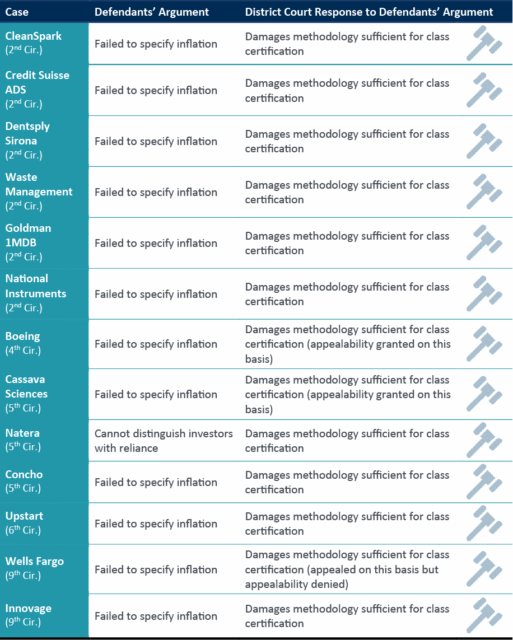 Note: Orange shading indicates cases in which the district court agreed (in part) with defendants’ truth-on-the-market challenges and limited the certified class on that basis.